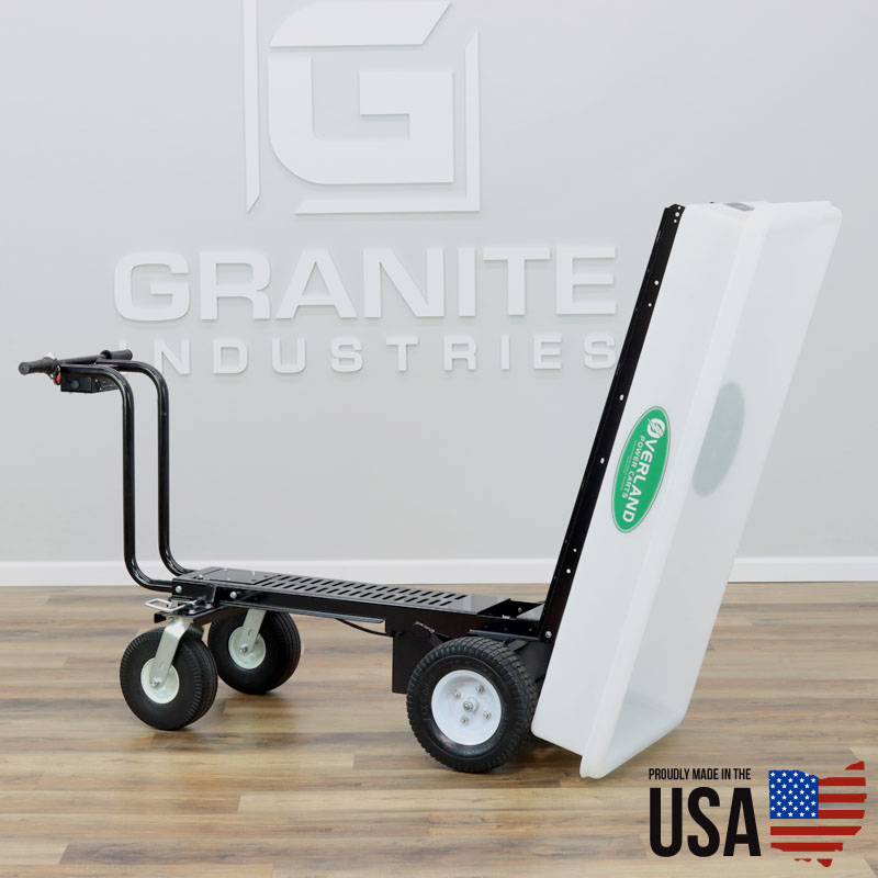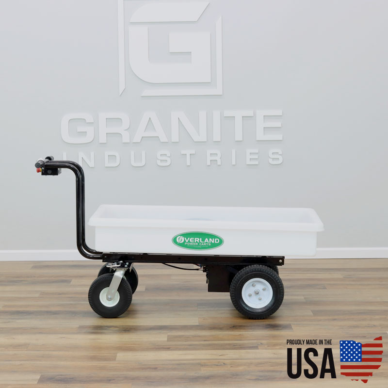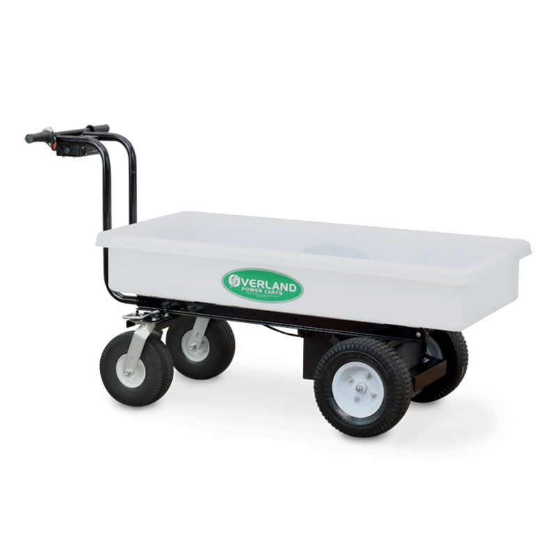 All of our Powered Carts, Wheelbarrows and Wagons use a twist style throttle. They’re simple to operate and will cut down on your work time. We like to say, “Dump Your Old Wheelbarrow and Drive an Overland!”