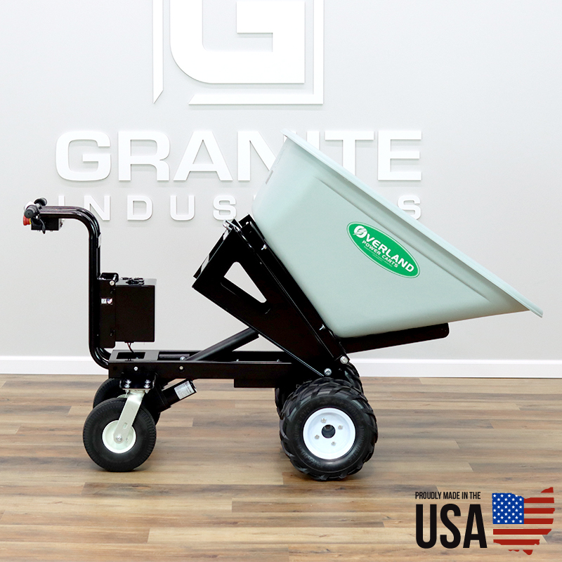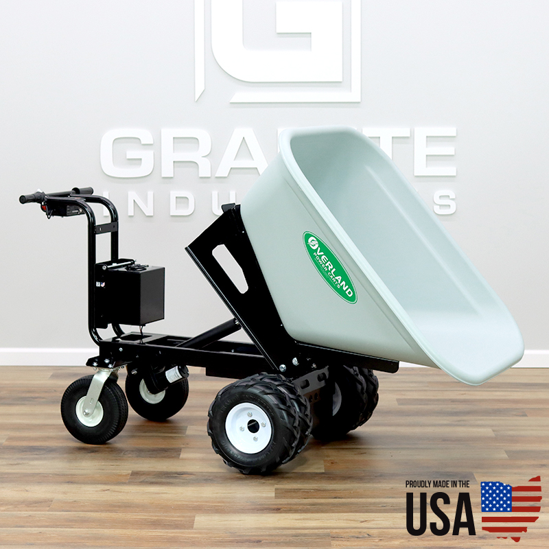 All of our Powered Carts, Wheelbarrows and Wagons use a twist style throttle. They’re simple to operate and will cut down on your work time. We like to say, “Dump Your Old Wheelbarrow and Drive an Overland!”